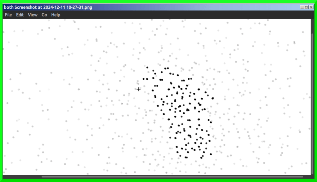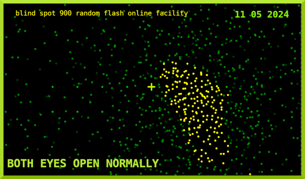 The below impression from May 11 2024 was supplied in “evidence” to Khistria, Maynard, Kuper et al. on 17th July 2024 with eyes 30 inches from 9 x 18 1/2 inch screen area, head on, along the horizontal axis from “+” which represents the fixation point :-