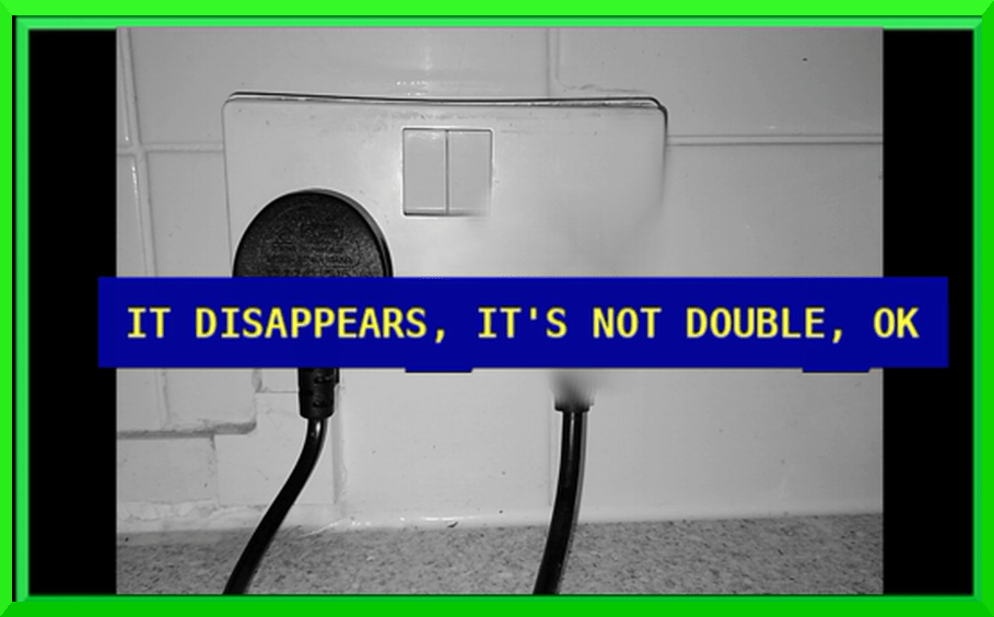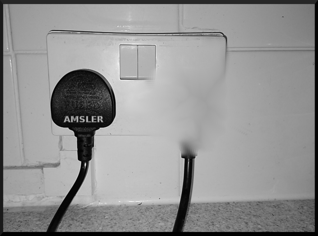 In part one, before the Esterman visual field test, I had used a double electrical socket with two plugs inserted (below -but not the original) which was usefully in view, as an example. “X” appeared to understand that when I looked to the left hand plug, the right hand one ‘disappeared’. (“X”) – “It disappears. It’s not double. OK … I repeated this just to be absolutely clear … (“X”) – OK. OK. That’s OK”.