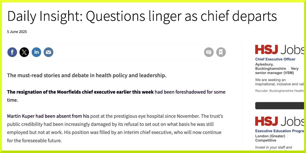 “Dear Ms Adam, Further to your reply below of 05/02/2025, I wonder if you have an update as promised. The previous time interval was about six months. Recently I became aware of changes at Moorfields (via HSJ, BMJ etc.), and the context of my complaint therein. After I presented information to you about Mr Mark Maynard’s public discussion of my case, relayed to 32000+ people online, I expect your team will have picked Maynard’s comment (1st September 2024): “I’ve yet to have a complaint that I’ve investigated, that has then gone on to the ombudsman be upheld. The majority do not get to the investigation stage. These tend to be where the patient has a perception that something went wrong, rather than the reality.”