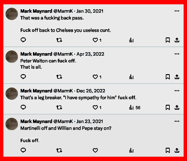 In relation to your concerns about the social media posts by Mark Maynard, this was addressed as part of a management conversation under Moorfields social media policy and he has removed all inappropriate posts from his social media sites. And as a further piece of information, and to let you know, we have a new Chief Executive, Mr Peter Ridley With best wishes Ian” [Mon, 3 Nov 2025]