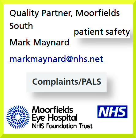 On the 9th of January 2025 I wrote to Ms Complaints at the above email address ….I remain unsure as to whether or not you have received my letter …. Within my complaint I included, amongst other concerns, the lack of integrity displayed by the Quality Partner, Moorfields South, a Mr Mark Maynard, who supervises Complaints / PALS, and may have access to patient records….