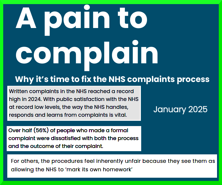 “Written complaints in the NHS reached a record high in 2024. With public satisfaction with the NHS at record low levels, the way the NHS handles, responds and learns from complaints is vital.”