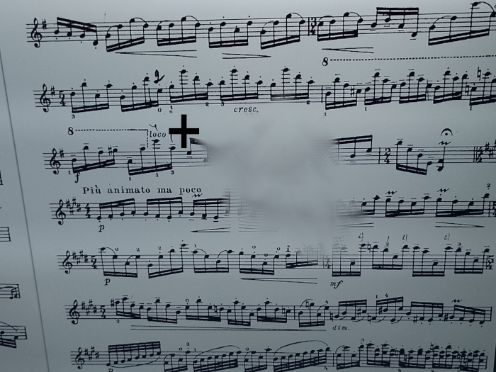 I pointed out what might be a normal distance from a seated position to a music stand. “Yeah I know. At this distance if you want to read the small details of the music you need music glasses” – ‘No. That isn’t the problem …’